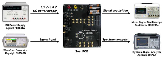 Measurement environment of the proposed IC with test board.