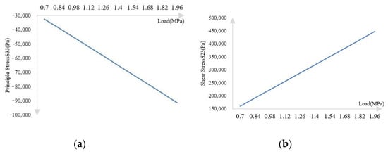 (a) Principal stress change curve with load (b) Shear stress change curve with load.