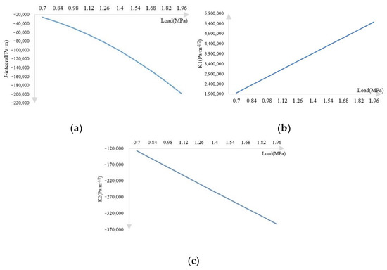 (a) J-integral curve with load (b) K1 curve with load (c) K2 curve with load.