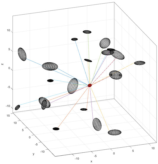Using the triangular matrix L, we can calculate if a point x is inside an ellipsoid on the map by using the inequality (12), where is the center of the ellipsoid.