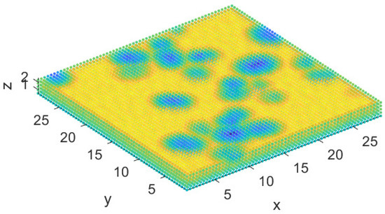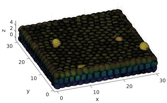 Room composed of ellipsoids looking from the outside (700 ellipsoids represent the walls, floor and roof, and 25 random ellipsoids represent the obstacles).