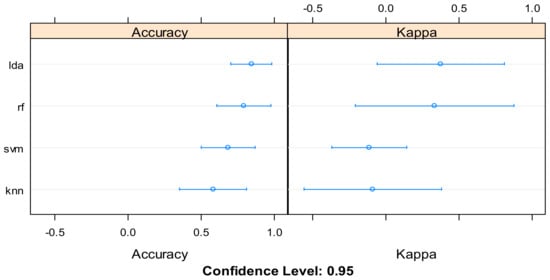 Using various algorithms, we found that LDA (0.879) was the most suitable, followed by Random Forrest (0.78) and SVM (0.684) using the Caret statistical package from R 4.0.2; KNN (0.578) were not suitable to predict hydroponic or conventional cultivation. The results including Kappa parameter are shown in Figure 3.