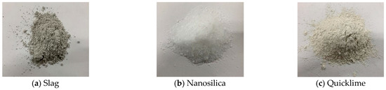 Combined with the above studies, a new stabilizer for stabilizing silt, named slag–nanosilica stabilizer (SNS), was developed in this research. The stabilizer is composed of slag, nanosilica, and quicklime. Orthogonal test and grey correlation analysis were used to determine the optimal ratio of each component of stabilizer [20,21] with the aim of evaluating the comprehensive properties of stabilized soil through macroscopic mechanical properties test, road performance test, and microscopic mechanism analysis.
