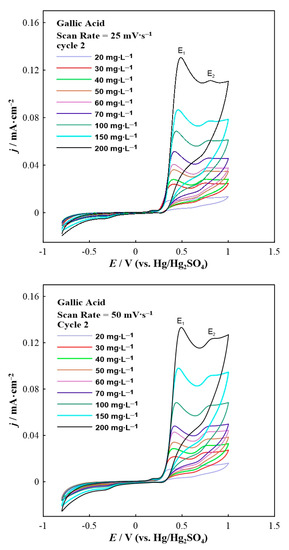 - Abdel-Hamid, R.; Newair, E.F. Electrochemical behavior of antioxidants: I. Mechanistic study on electrochemical oxidation of gallic acid in aqueous solutions at glassy-carbon electrode. J. Electroanal. Chem. 2011, 657, 107–112. [Google Scholar] [CrossRef]