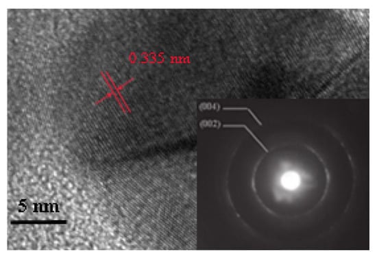 High-resolution transmission electron microscopy (HRTEM) measurement of a spherical carbon particle [58].