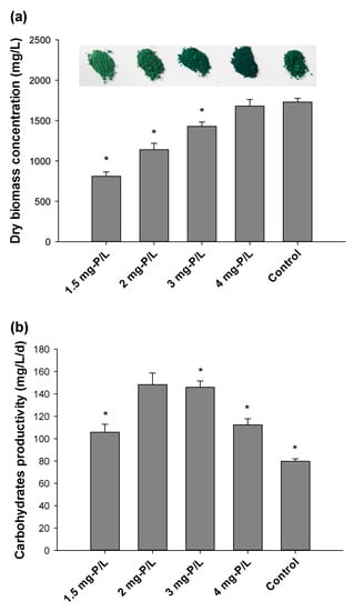 - Markou, G. Alteration of the biomass composition of Arthrospira (Spirulina) platensis under various amounts of limited phosphorus. Bioresour. Technol. 2012, 116, 533–535. [Google Scholar] [CrossRef]