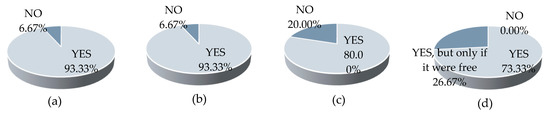As mentioned at the conclusion of the Introduction, there is a lack of commercially available solutions (e.g., plug-ins) or stand-alone software that would allow companies to use the software they currently use in their work for HS issues. At the same time, all respondents stated that they would use such a tool or software, and 73.33% (Figure 5d) would be willing to pay for it.