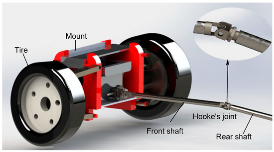 Illustration of a vehicle with two propeller shafts interconnected by a single Hooke’s joint.