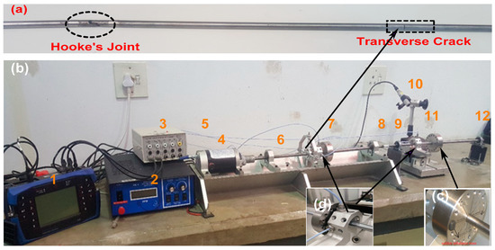 The problem of joint flexibility when the driveshaft is damaged is sometimes a limiting factor in achieving excellent performance. The critical part of preparation for the experiment was the extraction of the breathing crack mechanism on the driveshaft by two perpendicular probes connected to a data acquisition system. For this purpose, the sampling frequency was 12,800 Hz, and the nominal rotational frequency of the rotor was 20 Hz. An unbalanced excitation force, rotating with each disc-shaft at a frequency equal to the rotors spin speed, was considered. Then the real breathing crack was generated by adding cyclic loading discs to the driveshaft at the slit location. The detailed parameters of the completed rotors system used for both simulation and experiment are given in Table 1.