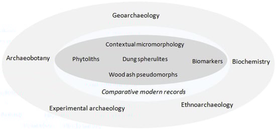 Summary of the main methods and analytical techniques used in the geo-ethnoarchaeological case studies to investigate modern livestock dung (based on [3,18,29] and personal observations).