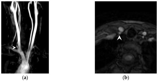 - Baik, J.; Baek, H.J.; Shin, H.S.; Choi, K.H. Duplication of the right vertebral artery: MRA findings and review of the literature. Springerplus 2016, 5, 1123. [Google Scholar] [CrossRef] [PubMed] [Green Version]
