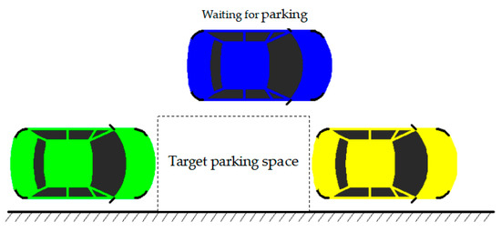 Figure 6 presents a schematic diagram of the parallel parking condition, showing the parking space with large traffic flow and tight parking space, and there are vehicles in front of and behind the target parking spaces.