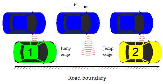 - When the target vehicle gradually drives away from vehicle 1, the ultrasonic sensor loses the vehicle that can be detected, and the detection value will suddenly increase, resulting in an obvious jump at the front edge of vehicle 1. As the vehicle travels, when the sensor detects vehicle 2, the detection value suddenly decreases, an obvious jump occurs at the rear edge of vehicle 2, and the vehicle travel distance S between the two jumps of the detection value is recorded. After that, the vehicle continues to move forward, and the ultrasonic sensor obtains a detection value with small fluctuation.