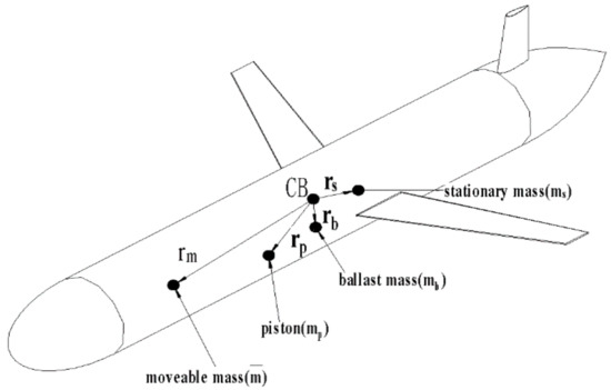 In this study, the piston assembly was regarded as a movable mass block, and when the piston and movable mass were displaced, the center of gravity of the glider system changed accordingly. The underwater glider was regarded as a rigid body motion system composed of several masses, including the movable mass (