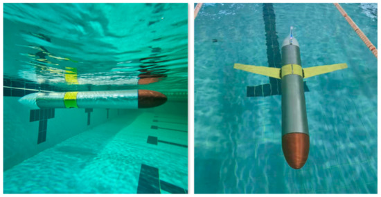 Figure 15. The glider was not completely submerged in water, which implies that the antenna housing appeared partially above the water. The buoyancy of the glider is illustrated in
