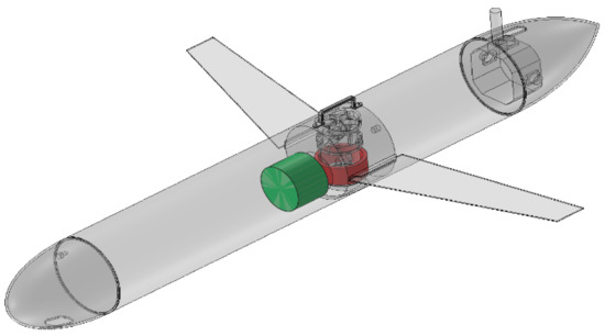 11] present a similar underwater glider with a diameter of 0.22 m, whose total drag coefficient is 0.2629. The water volume was obtained using the equations above. Considering the internal space of the waterproof housing and the compactness of the structure, the inner diameter of the cylinder of the buoyancy engine was set to 0.15 m. From the known conditions, the displacement of the piston can be calculated to be approximately 74.3 mm when the glider reaches the maximum speed. Taking into account the error in the theoretical calculation and the difference in the hydrodynamic drag coefficient, the effective stroke of the piston was set to 220 mm.