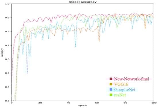 In Figure 15, it is obvious that the VGG16-dr model not only has a significant improvement in accuracy, but the training curve is also more stable. This proves that the proposed dimensionality reduction convolutional network can effectively improve network performance and can be applied to different network models.