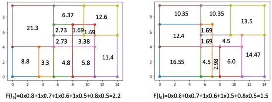 - REQ5: There are not many spaces with areas less than 2 m2 and w5 = 0.5, Req5 ∊ {0,0.2,0.4,0.6,0.8,1} (see Figure 7).