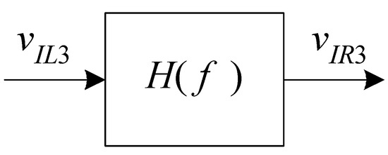 When spectra (and cross spectra) with well-defined peaks at fC − fLF and fC + fLF are obtained, we can extract the value of the impedance of the DUT according to the following procedure. The relationship between signals and DUT impedance summarized by Equation (16) can be represented by the signal chain reported in Figure 5. As long as the frequency response H is such that at frequency fC + fLF we have: