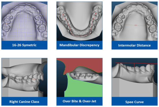 - Rossini, G.; Parrini, S.; Castroflorio, T.; Deregibus, A.; Debernardi, C.L. Diagnostic accuracy and measurement sensitivity of digital models for orthodontic purposes: A systematic review. Am. J. Orthod. Dentofac. Orthop. 2016, 149, 161–170. [Google Scholar] [CrossRef]