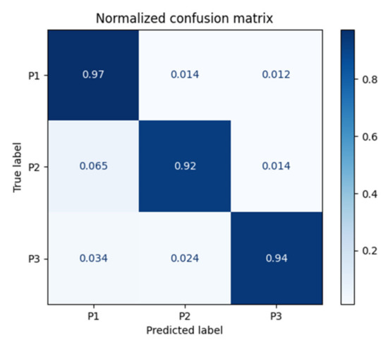 Figure 9 shows the Confusion Matrix for the KNN classifier, which managed to correctly capture 97% of the P1 classes, 92% of the P2 classes, and 94% of the P3 classes.