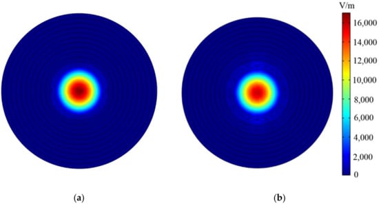 (a) The electric field distributions of the fundamental mode with water at 280 K (b) and without water at 0.45 THz.