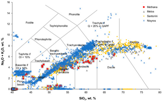 - Francalanci, L.; Vougioukalakis, G.E.; Perini, G.; Manetti, P. A West-East Traverse along the Magmatism of the South Aegean Volcanic Arc in the Light of Volcanological, Chemical and Isotope Data. Dev. Volcanol. Elsevier 2005, 7, 65–111. [Google Scholar] [CrossRef]