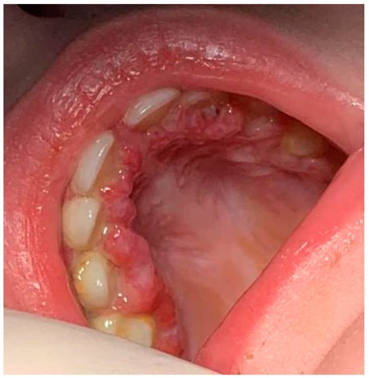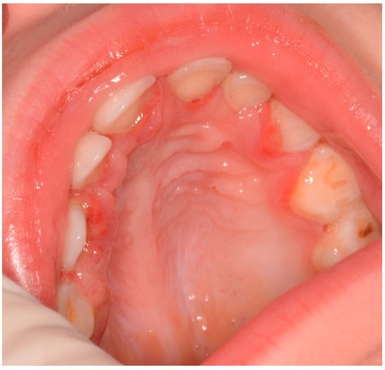Ascorbic acid (vitamin C) plays the key role of a cofactor in several metabolic reactions involved in tissue growth, development and healing [1]. In fact, ascorbic acid enables collagen’s hydroxylation [2]; then, it empowers the biosynthesis of carnitine and norepinephrine, and is also involved in the metabolism of tyrosine and the amidation of peptide hormones [3]. Vitamin C performs an important function in the immune system too: scorbutic individuals usually develop a higher incidence of infections, and vitamin C auxiliary therapy is actually considered for sepsis treatment support [4]. Generally, signs of ascorbic acid deficiency begin to show after about 30 to 90 days of insufficient vitamin C intake [5]; clinical findings are directly related to the various metabolic pathway which ascorbic acid is involved in [6]. Most of characteristic disorders of vitamin C deficiency can overlap with rheumatological, infectious or hematological diseases, showing a wide range of musculoskeletal and mucocutaneous manifestations, thus mimicking other pediatric conditions [7]. Scurvy is a well-known but uncommon disease, and nowadays is considered a rare condition in developed nations [8]. Despite its low frequency in the population, cases of scurvy still occur in people at risk, including elderly populations, patients affected by malabsorption syndromes and eating disorders, and, above all, pediatric patients with restricted or selective feeding [9]. These categories of people have chronically low levels of vitamin C, which cannot be intrinsically produced within the human body and therefore must be obtained via dietary intake [10]. The most common clinical features are hypertrophy, swelling and bleeding of the gums, follicular hyperkeratosis, lower limbs swelling and tenderness, poor wound healing [11,12]. Oral cavity signs represent peculiar characteristics in patients affected by scurvy; nevertheless, gingival overgrowth stands out as a typical manifestation of several diseases, resulting in differential diagnosis for idiopathic enlargement, drug-induced enlargement, enlargement associated with systemic diseases (such as Leukemia or Granulomatous diseases) and neoplastic enlargement (gingival tumors) [13,14]. Serological measurement of vitamin C is a readily available and widely used laboratory test; despite generally ascorbic acid serum levels accounts for the most recent food intake, they may be related to the level of reserves and predict the possibility of developing clinical signs [15]. Dietary restrictions and poor compliance with taking oral supplements appears to have brought scurvy back to the fore in the pediatric population, particularly in patients with neurodevelopmental disorders linked to highly selective diets [16]. Despite scurvy’s return to clinical practice, the extreme heterogeneity of the clinical signs makes the identification of patients suffering from scurvy a very demanding challenge for the pediatric dentist [17]. The purpose of this study is to provide pediatric dentists with the means to identify clinical parameters and diagnostic tools useful for detecting patients suffering from scurvy. Here we present a case report of a patient with scurvy and a systematic review of the literature on scurvy in pediatric population.