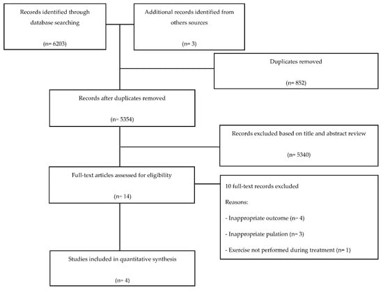 - Antunes, P.; Esteves, D.; Nunes, C.; Amarelo, A.; Fonseca-Moutinho, J.; Afreixo, V.; Costa, H.; Alves, A.; Joaquim, A. Effects of physical exercise on outcomes of cardiac (dys)function in women with breast cancer undergoing anthracycline or trastuzumab treatment: Study protocol for a systematic review. Syst. Rev. 2019, 8, 239. [Google Scholar] [CrossRef] [Green Version]