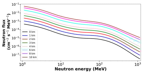 Figure 1, we show the atmospheric neutron spectra for various altitudes obtained with EXPACS for geographical points with a latitude of 0