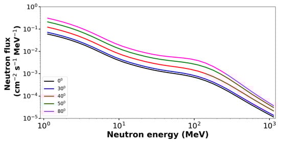 Figure 2, we show the atmospheric neutron spectra for various latitudes obtained with EXPACS for geographical points with an altitude of 10 km and a longitude of 0