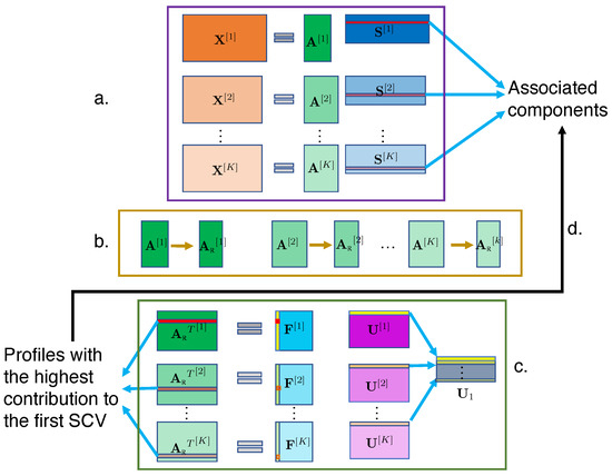 where denotes the transpose of the Moore–Penrose pseudo-inverse of a matrix. Note that this C-ICT framework allows for different orders for each dataset—an important feature for multimodal data fusion—as shown in Figure 2.
