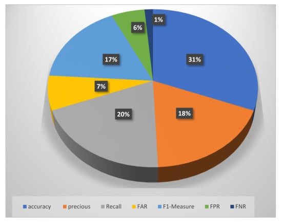 Accuracy, precision, recall, false-positive rate (FPR), false-negative rate (FNR), and f-measure are the most frequently employed model evaluation techniques based on deep learning [50,51,52,53,54].