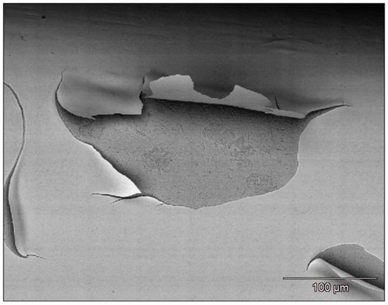 Exfoliation occurred on sample #12 observed by SEM in backscattered electrons mode.