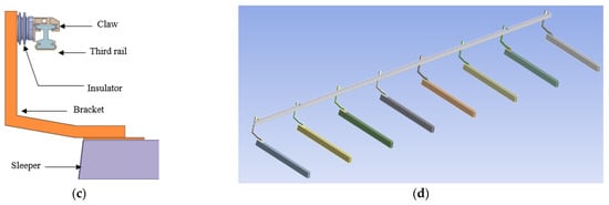 SMRT uses a bottom-contact third rail system, with the third rail being ALSS type. The typical third rail arrangement is shown in Figure 2a,b. The structural properties of each component in the support structure and the third rail are listed in Table 1.