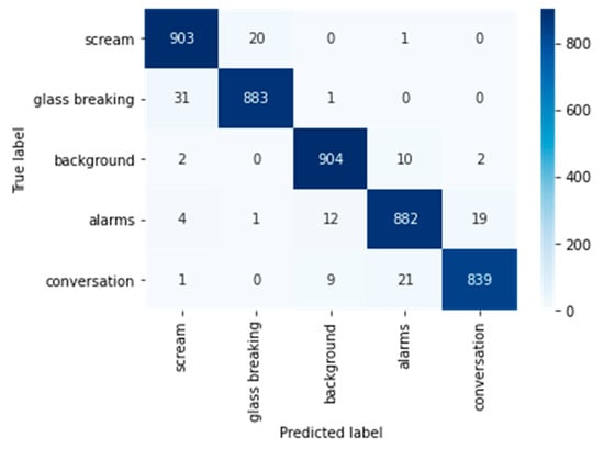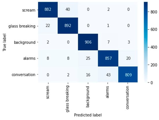Support vector machines (SVM) have been largely used for the detection of screams. The authors in [30] focused on detecting screams using SVM as a classifier for real-time scream detection in a home environment. Their model exhibits a false acceptance rate (FAR) of 7.66%. In [33], a robust scream-sound detection system is presented for a surveillance application using a sound-event partitioning (SEP) method and SVM as a classifier. They reported equal error rates (EER) of 7.24% in detection at a signal-to-noise (SNR) ratio of −5 dB. A two-stage supervised learning-based method with tunable decision parameters for each stage has been proposed in [32] to detect screams and cries in urban environments. This proposed model achieved a detection rate of 93.16% and a FAR of 4.76% at a SNR of 20 dB. SVM has been used in previous research on audio event detection for surveillance applications where scream is a target class. The paper in [34] proposes a low power SVM classifier for audio classification. The performance and power consumption of various acoustic features and SVM kernels have been compared. Results show that the CPU utilization of polynomial SVMs decreases by 28 times without reducing classification accuracy. Authors in [35] discussed a classification approach of speech and non-speech sound where non-speech sounds are further classified into laughs, screams, sneezes, and snores. Their classification techniques included using multivariate adaptive regression splines (MARS) and SVM, and they reported highest classification accuracy of 89.91% with SVM. Research work in [26] proposes a one-class SVM for classifying nine audio events (human screams, gunshots, glass breaks, explosions, door slams, dog barks, and phone rings). Their result shows highest classification accuracy of 92.33%.