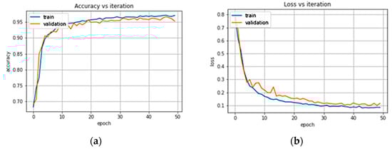 We investigated the accuracy and loss curves to check if the model faces any overfitting or underfitting issues. The accuracy curve in Figure 11a looks a good fit indicating no issues with overfitting or underfitting. However, when we looked into the loss curve shown in Figure 11b, we found that the loss in the validation curve started to increase and make the model unstable. We added a dropout layer [63] of 50% in both LSTM layers to resolve this issue, keeping all the other parameters the same to regularize the training and validation weight updates. This approach resolved our overfitting issue, and the curves indicated a convergence of high accuracy and minimal loss.