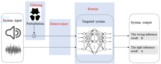 The authors of [61] are inspired by MVP, and the phenomenon in which an adversarial audio inputting into different speech recognition systems has different recognition results. Combined with the characteristics of MVP, the authors proposed to input one audio into multiple different ASR systems and then performed the output results. The similarity is calculated and passed through a two-classifier to determine whether the input audio is adversarial in order to achieve anti-audio detection.