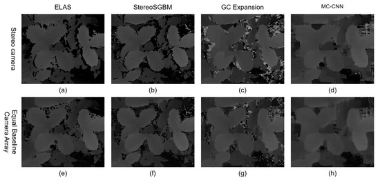 - Kaczmarek, A.L. Stereo vision with Equal Baseline Multiple Camera Set (EBMCS) for obtaining depth maps of plants. Comput. Electron. Agric. 2017, 135, 23–37. [Google Scholar] [CrossRef]