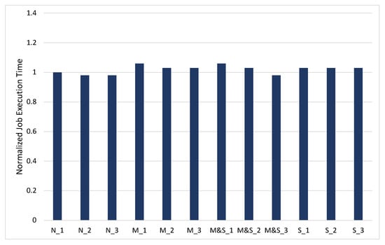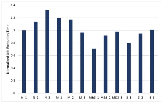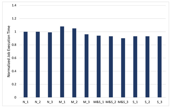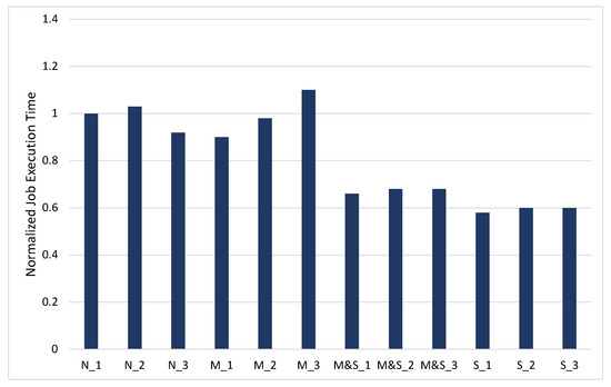 The normalized TeraSort job execution time for 10 GB dataset.