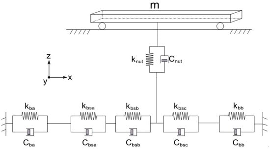 The ball screw system is used to realize X-axis motion, and the stiffness in the X direction is the lowest []. As a result, the equivalent dynamic model of the system on the X-axis is established as shown in Figure 2.