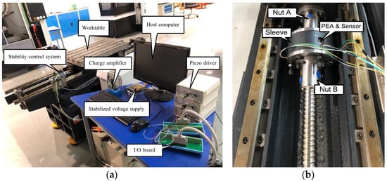 In this paper, a variable preload force control device using three PEAs installed between the two nuts to exert preload forces on the ball screw in order to eliminate or reduce the backlash was developed to control the stability of the feed drive system by increasing the stiffness of the system at a high response rate using a P-I model-based control strategy. Considering the application of PEAs in a preload system, a force control system was designed and studied. By means of this methodology, the machining precision was significantly improved. Furthermore, the proposed control strategy, a feedforward compensator, and a PID controller were applied in the feed drive system, and the inverse of the P-I model was used as the feedforward compensator. On the basis of the model simulations and experimental testing, the high anticipated performance with respect to the stability of the feed drive system with the proposed P-I model-based control algorithm was proved to be superior to that obtained when using a conventional PID controller. By means of the proposed control strategy, the desired preload force can be adjusted with fast response and high precision compared to conventional strategies. In principle, this paper leads the initiative for future investigations in this area, with various feed drive system stability control strategies that could contribute directly to the attainment of ultra-precision machining.
