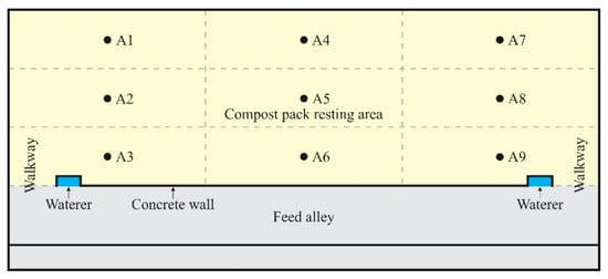 Nine grid spaces (A1 to A9) of sample collections inside the CBP barns.