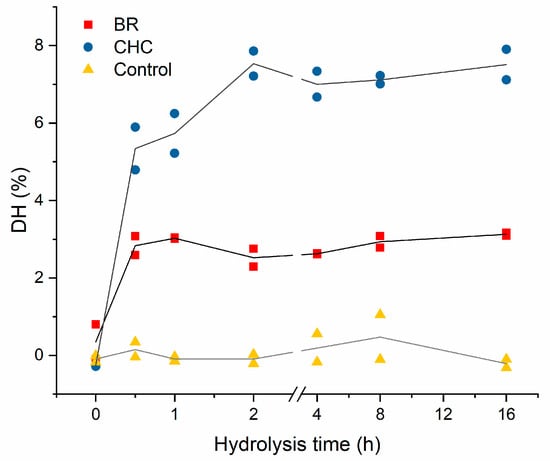 - Nielsen, P.M.; Petersen, D.; Dambmann, C. Improved Method for Determining Food Protein Degree of Hydrolysis. J. Food Sci. 2001, 66, 642–646. [Google Scholar] [CrossRef]