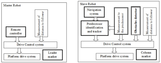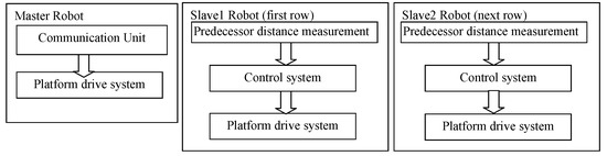 Basic structure of remotely controlled leader (“Master Robot”) and followers (“Slave Robots”).