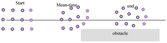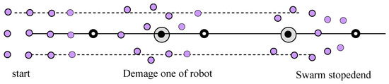 As the swarm occupies a large area, it is possible that it will meet some obstacles on its way. A swarm can evade an obstacle while maintaining its structure as one rigid body—without space between the robots—so long as all robots avoid it on the same side. This can be time- and energy-consuming. When we observe an animal swarm, we notice their ability to change the swarm’s structure in order to avoid obstacles, even though the individual animal may seem quite primitive [10]. Some animals living in a swarm die when they are outside of it. We can conclude that swarm intelligence is required to split and reconfigure itself. The research problem in the current study is the question of what is required in order to create an intelligent swarm of robots.