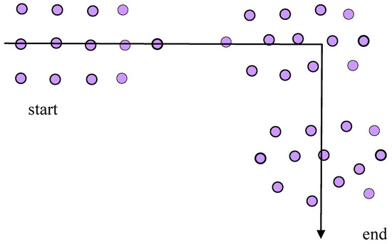 A group of soldiers is a hierarchical structure featuring a superior and subordinates. The commander knows the team’s task and plans the role of each member of the team. The team moves in an array formation (rows and columns) [17]. In this model, the front (first) row is followed by the second, and so on; each row tryies to walk in the previous row’s footsteps. The distance between members is kept at an almost constant value. The members in the next row follow the previous one in their columns. The problem is how to keep the alignment of the rows, so the leader needs to be an example to the front row. The array is set, and the positions of its members are not changeable. During turning, the speeds of soldiers in a row are different and controlled by themselves in reference to their neighbours. A robot in a line has to pay attention to the robot ahead of it in the column, but in the first row the robots’ consideration is their distance from the leader and from the other robots in the row. This is not easy, even for human soldiers who are specially trained for it. For such scenarios of movement, we have various functions in the array: the leader, the first row member, and the followers.