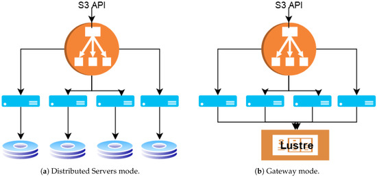 Figure 1. Different MinIO Modes. - Gateway (gw): adds S3 compatibility to an existing shared storage. On Mistral, we use the Lustre distributed file system as the backend file system as seen in Figure 1b.