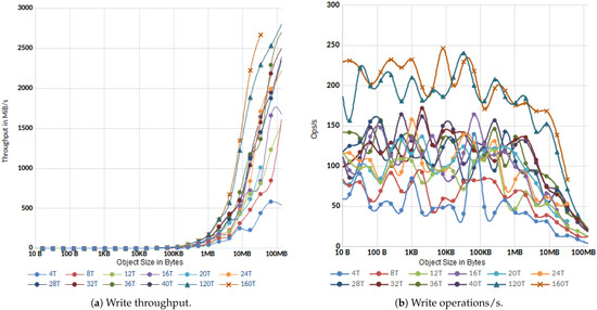 - Zheng, Q.; Chen, H.; Wang, Y.; Duan, J.; Huang, Z. Cosbench: A benchmark tool for cloud object storage services. In Proceedings of the 2012 IEEE Fifth International Conference on Cloud Computing, Honolulu, HI, USA, 24–29 June 2012; pp. 998–999. [Google Scholar]