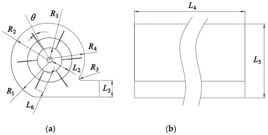 The number and inclination angle of the blades are the key structural parameters of the film removal device. The former design mainly considers two aspects: first, the effect of film removal. When the speed of the vane-type film removal roller is fixed, the greater the number of blades is, the greater the contact frequency between the blades and arc-shaped teeth is. It is necessary to ensure that the same arc-shaped teeth are acted by blades at least twice when the film picking device rotates one full circle. Second, dynamic balance. The blades are arranged at equal angles along the tangential direction of the surface of the roller, and the axial direction is symmetrical, which is conducive to the dynamic balance of the vane-type film removal roller []. Considering the above factors and combined with the structure of the whole machine, the number of blades was determined to be 6.